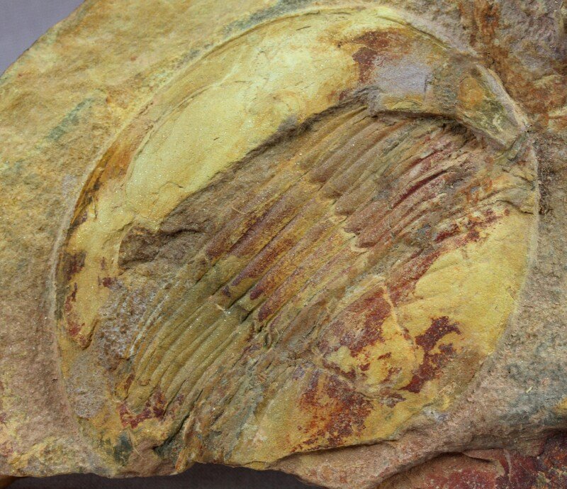 Isabelinia glabrataTrilobites Order Asaphida, Family Asaphidae Geological Time: Ordovician, Llandeilian Stage (~463 million years ago) Size (25.4 mm = 1 inch): Trilobite is 47 mm long by 55 mm wide on a 185 mm by 60 mm matrix. Fossil Site: Valongo, Portugal Code: SRC04 Price: $175.00 |