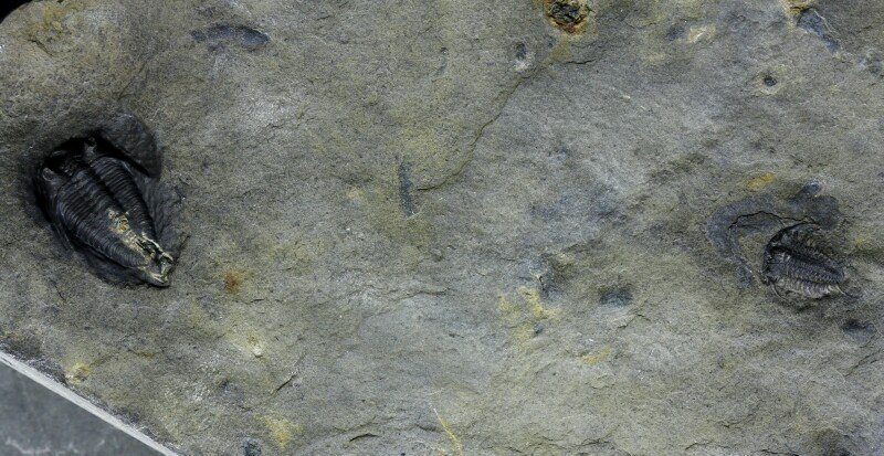 Achatella achatesTrilobites Order Phacopida, Family Pterygometopidae Ceraurus pleuraxanthemusTrilobites Order Phacopida, Family Cheiruridae Geological Time: Middle Ordovician Size (25.4 mm = 1 inch): Achatella: 23 mm long , 13 mm across. Ceraurus: 12 mm long by 11 mm across (with spines) Matrix: 75 mm by 110 mm Fossil Site: Rust Formation, Trenton Group, Trenton Falls, New York, USA Fossil Code: MT104 Price: $625.00 |