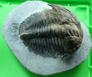 Aff Gigantopygidae indetTrilobites Order Redlichiida, Family Gigantopygidae (?) Geological Time: Lower Cambrian, Atdabanian Stage Size (25.4 mm = 1 inch): Trilobite is 110 mm long (curve measure) , 80 mm across . Matrix: 150 mm by 110 mm Fossil Site: Issafen Formation, Issafen, Morocco Fossil Code: 15036 Price: Sold |