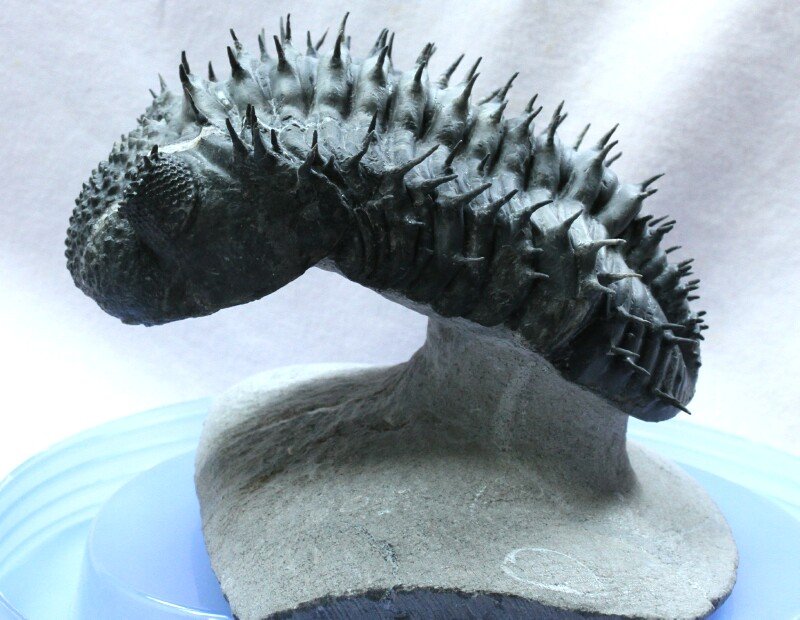 Drotops armatus forma armataTrilobites Order Phacopida, Family Phacopidae Geological Time : Middle Devonian Size: Trilobite is 145 mm long Fossil Site: Jebel Issoumour, Alnif, Morocco |