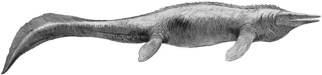 Tylosaurus proriger erroneously depicted with a dorsal crest and no tail fluke, by Charles R. Knight, 1899: