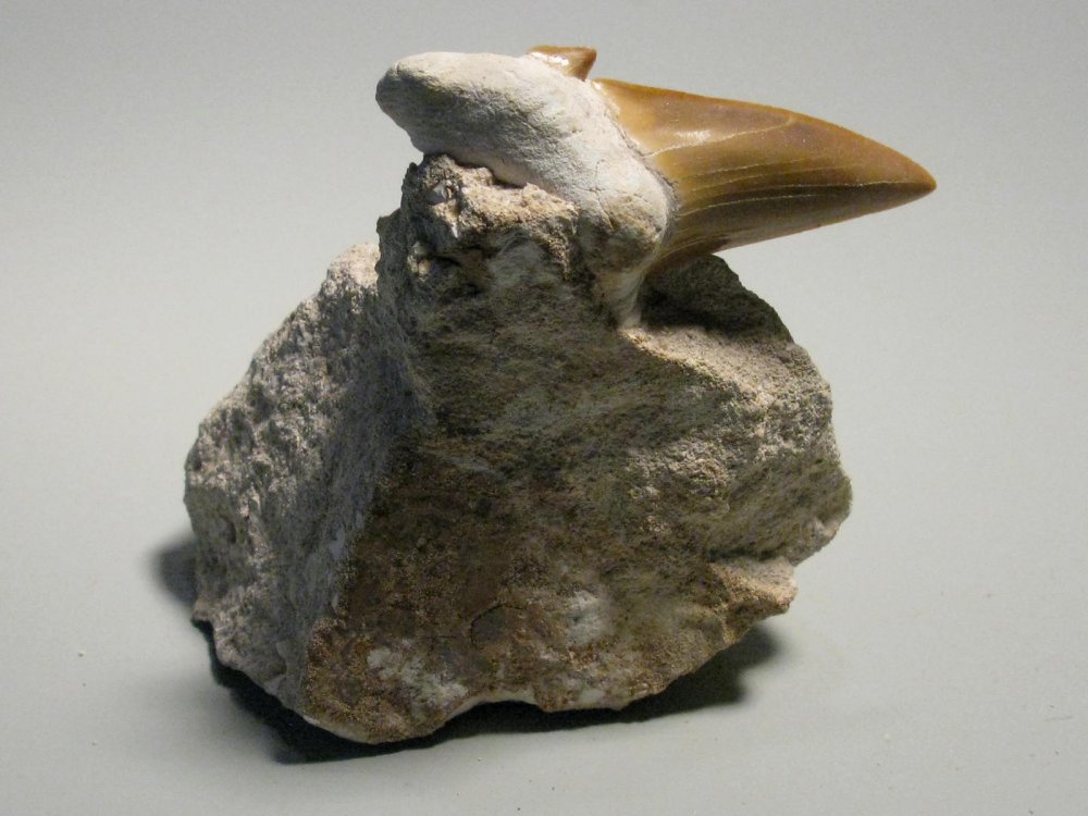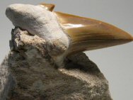 Otodus obliquusClass Chondrichthyes, Order Lamniformes, Family Otodontidaee Geological Time: Lower Cretaceous Size: Otodus tooth is 57 mm along diagonal Fossil Site: Khouribga Plateau, Morocco Fossil Code: SRF52 Price: $35.00 |