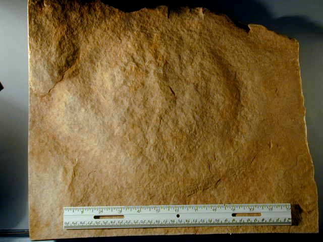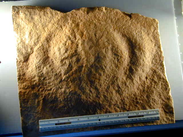 Name: Madusae Jellyfish; Phylum Cnidaria Age: Middle Cambrian Size: mm (25.4mm=1 inch): Matrix measures 390 mm across Location: Mount Simon Sandstone Outlier, Mosinee,Wisconsin Code: DD19 Price: $525.00 - Sold Phylum Cnidaria (anemones, corals, jellyfish and sea pens) are among the most ancient animals, simplest in body form, and yet are ubiquitous and widespread even today in marine environments. The earliest forms in the fossil record appear in Ediacarian fauna of Southern Australia, which dates to the Precambrian some 600 million years ago. This is clear testiment that old and simple animals can be enormously successful. Here we have a sandstone plate with a Hage Madusae Cambrian Cnidarian from an intriguing site in Central Wisconsin. Being comprised entirely of soft tissue unlike animals with exoskeletons (e.g., trilobites) or skeletons (vertebrates), jellyfish fossils are body fossils that are impressions of the jellyfish. Such fossil impressions are rare, especially from the Cambrian. Jellyfish were some of the most ferocious preditors of the Cambrian marine environment. This is one of the best Jellies to come from the Krakowski quarry. Note in the side views how high the impression is above the matrix base. Note in all the views that there are impressions of internal structures, a truly rare phenomena for a Cnidarian fossil. These jellyfish come from a particular horizon in the Mount Simon Sandstone formation that also yields facinating Diplichnites, huge Jellyfish (Medusae) and Climactichnites. |