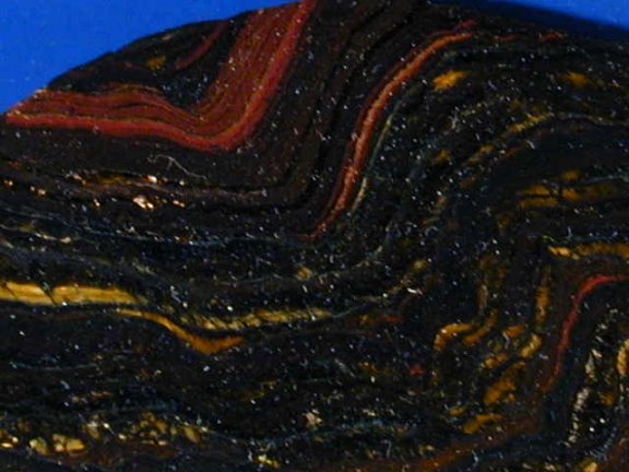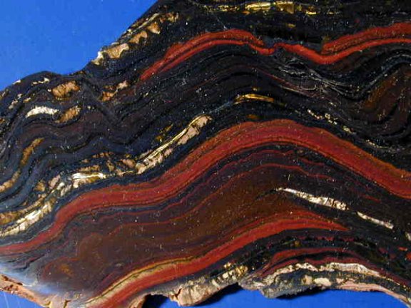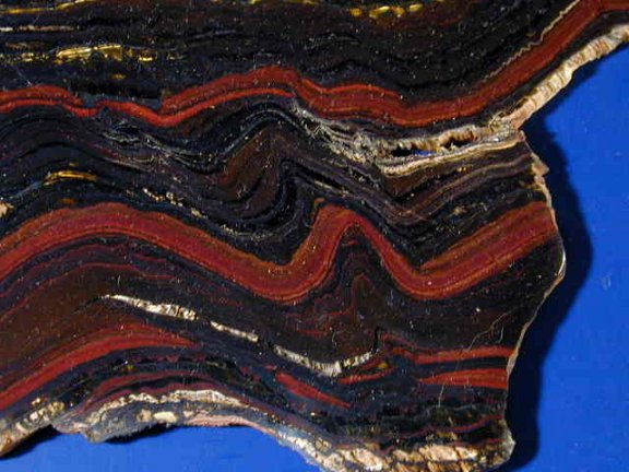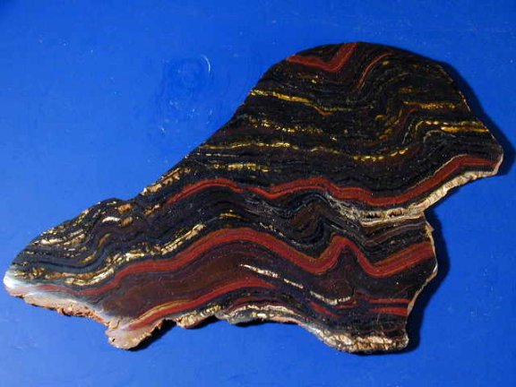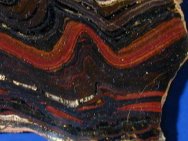 | Name: Banded Iron Stromatolite Age: Paleoproterozoic to Archaean (2.4 to 2.6 Billion Years Old) Size: mm (25.4mm=1 inch): 235 by 158 mm Location: Hammersly Ranges, Western Australia Code: DS212 Price: $90.00 - sold |