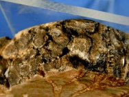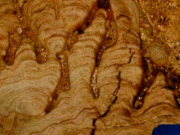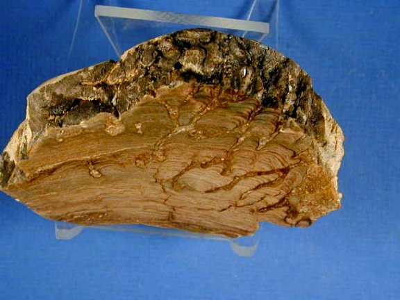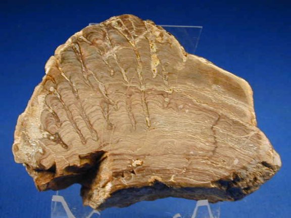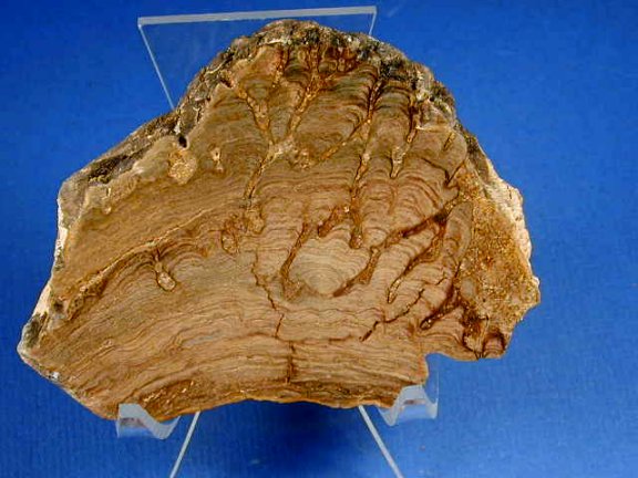 Name: Stromatolite Cryptozoon type Age: Middle Eocene (about 45 million years old) Size: (25.4mm=1 inch): 4.3 by 3 inches by about .8 inches thick Location: Green River Shale, Eden Valley, Wyoming near Farson Code: DS681 Price: $35.00 - Sold |