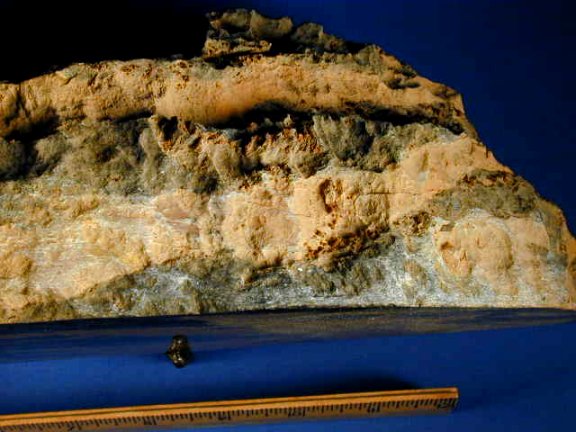 Stromatolite Pilbaria perplexaAge: Paleoproterozoic (2.0 billion years old) Size: (25.4mm=1 inch): 17.4 by 5.5 inches; thickness varies between 2 and 4 inches, weighing 6.02 kilograms Fossil Site: Duck Creek Dolomite, "Wyloo Group," Ashburton Basin, Australia Code: KS14 Price: $425.00 - sold |