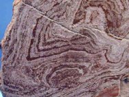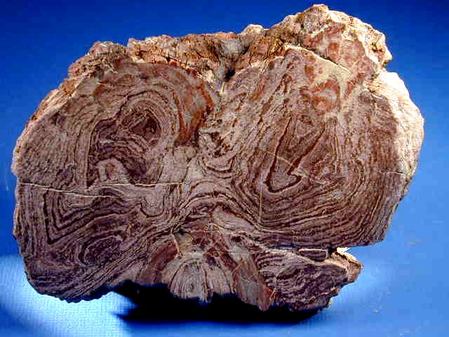 Name: Stromatolite Oncolite, a true algal ball stromatolite Age: Upper Cretaceous (65 to 90 million years old) Size: mm (25.4mm=1 inch): 175 by 130 by 68 mm, weighing 64.2 ounces - more than 4 pounds Location: a lake bed near Chihuahua, Mexico Code: KS6 Price: $165.00 - Sold |