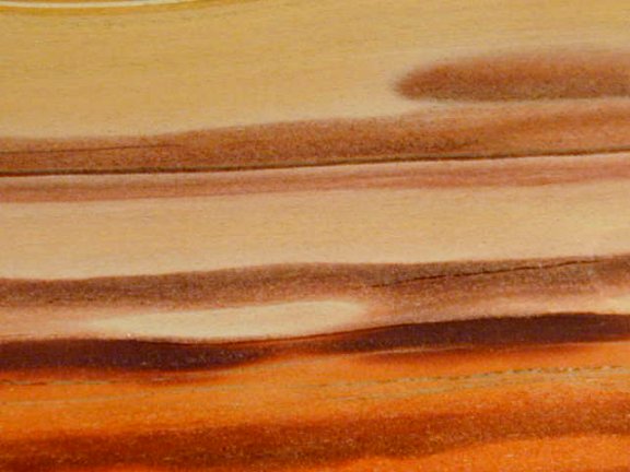 colorful, with shades of reddish brown, to tan to a purplish tan.