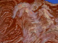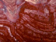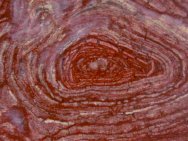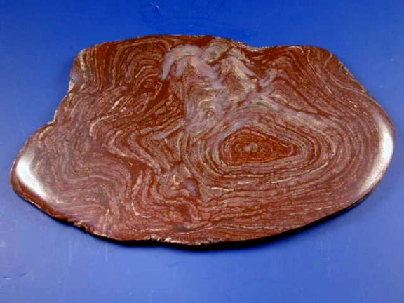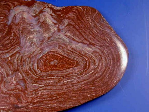 StromatoliteThis beautiful stromatolite exhibiting classic growth ring structure is from a locality that people generally associate with trilobites and other Paleozoic fossil, the Atlas Mountains of Morocco, except this fossil is 2 to 3 times older. Dating to the Mesoproterozoic, this 1.0 to 1.2 billion year old stromatolite has various shades of reddish brown to almost white in irregular, alternating bands. The unidentified prokaryotic bacteria responsible for this fossil is likely to be a species of cyanobacteria, the primitive organisms that largely produced Earth's atmospheric oxygen.