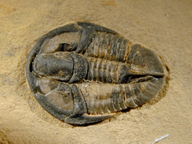 Genevievella granulatus TrilobiteTrilobite Order Ptychopariida, Family Llanoaspididae Geological Time: Middle Cambrian Size: 14 mm on 60 by 55 mm matrix Fossil Site: House Range, Weeks Formation, Millard County, Utah Fossil Code: SRT111 Price: $195.00 - sold Professionally air abrasion cleaned. |