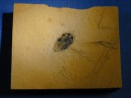 Nephalicephalus beebei TrilobiteTrilobite Order Ptychopariida, Family Menomoniidae Geological Time: Middle Cambrian Size: 13 mm on 58 by 45 mm matrix Fossil Site: House Range, Weeks Formation, Millard County, Utah Fossil Code: SRT106 Price: $145.00 - sold Professionally air abrasion cleaned. Exhibits mottled color characteristic of the Weeks Formation. Very large specimen for the species. |