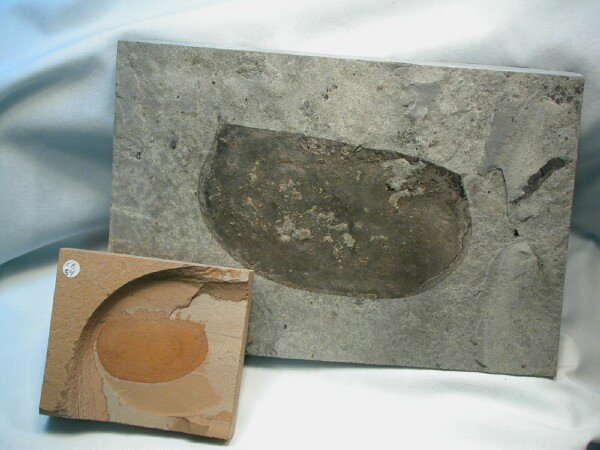 Perspicaris spPhyllocarida Geologic Time: Early/Middle Cambrian (~520 million years ago) Size (25.4mm=1 inch): 130 mm long by 73 mm across on a 215 mm by 145 mm matrix Fossil Site: Marjum Formation, House Range, Millard County, Utah Fossil Code: CB057 Price: $285.00 - sold |
