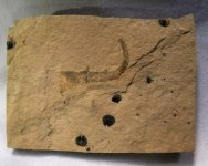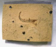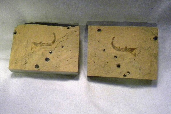DinocarididaAnomalocarididae (?) Geologic Time: Upper Middle Cambrian Size (25.4 mm = 1 inch): Fossil is 35 mm long (outside curve) on a 65 mm by 50 mm and 65 mm by 45 mm matrix pair Fossil Site: Weeks Formation, Millard County, Utah Fossil Code: UB185 Price: $325.00 - sold |