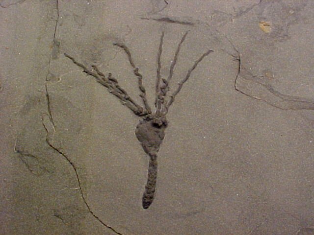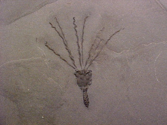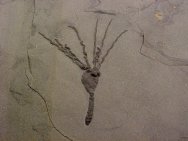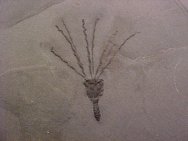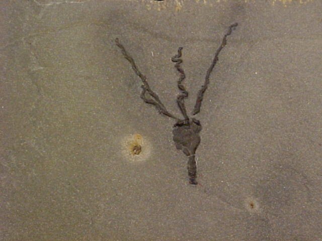 Name: Gogia spiralis; Echinodermata: (also called Dawn Crinoid) Age: Middle Cambrian Size (25.4 mm = 1 inch): Matrix 250mm X 220mm Gogia 23mm, 40mm, 38mm Fossil Site: Wheeler Shale, Millard County, Utah Code: EC025 Price: $125.00 - sold