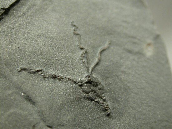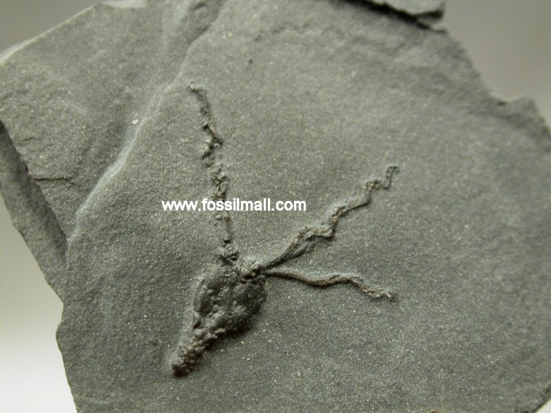 Gogia spiralis (also called Dawn Crinoid)Echinodermata, Eocrinoidea Geological Time: Middle Cambrian Size (25.4 mm = 1 inch): Fossil is 16 mm long and 15 mm wide on a 30 mm by 30 mm matrix Fossil Site: House Range, Wheeler Shale, Millard County, Utah Code: EC093 Price: $50.00 - sold |
