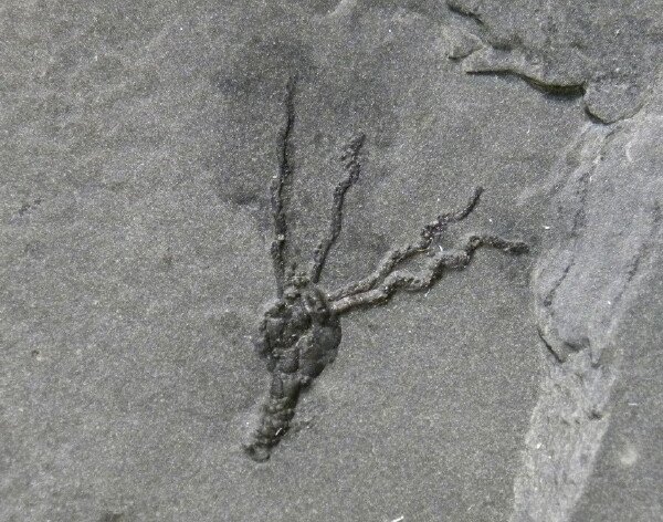 Gogia spiralis (also called Dawn Crinoid)Echinodermata, Eocrinoidea Geological Time: Middle Cambrian Size (25.4 mm = 1 inch): Fossil is Size: mm (25.4mm=1 inch) 16 mm long and 13 mm wide on an 80 mm by 80 mm matrix Fossil Site: House Range, Wheeler Shale, Millard County, Utah Code: EC0110 Price: Sold |