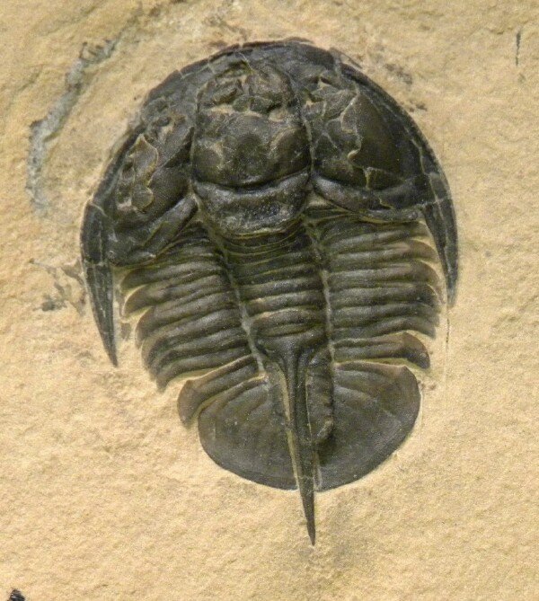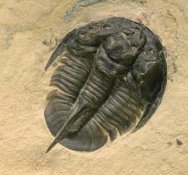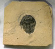 Genevievella granulatusTrilobite Order Ptychopariida, Family Llanoaspididae Geological Time: Upper Middle Cambrian Size (25.4 mm = 1 inch): Trilobite is 27 mm long (with spine) by 20 mm wide on a 58 mm by 60 mm matrix Fossil Site: Weeks Formation, Millard County, Utah Fossil Code: UB180 Price: $450.00 - sold |