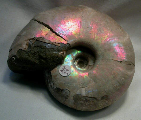 Desmoceras latidorsatum AmmoniteGeologic Time: Upper Early Cretaceous, Albian Stage Size (25.4mm=1 inch): 85 mm diameter, 35 mm across living chamber Fossil Site: Mahajanga Province, Madagascar Fossil Code: AM033 Price: $75.00 - sold