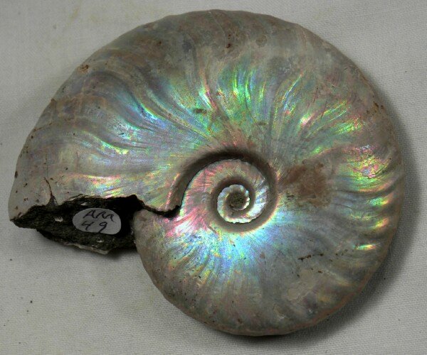 Cleoniceras besaiei AmmoniteGeologic Time: Upper Early Cretaceous, Albian Stage Size (25.4 mm = 1 inch): Ammonite is 63 mm in diameter Fossil Site: Mahajanga Province, Madagascar Fossil Code: AM049 Price: $65.00 - sold |