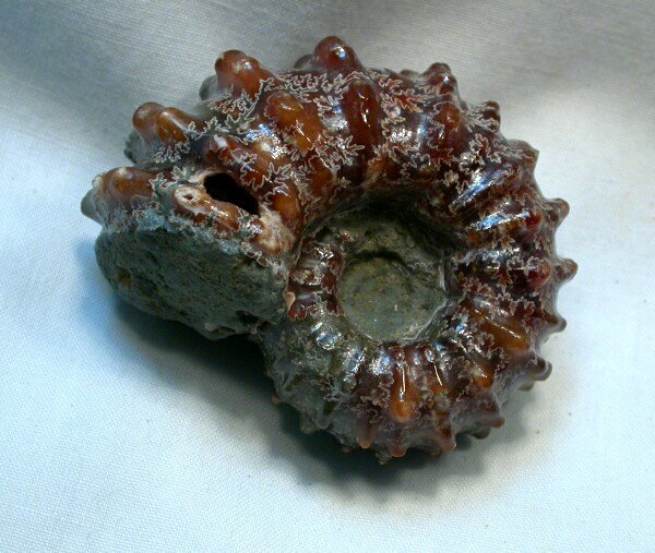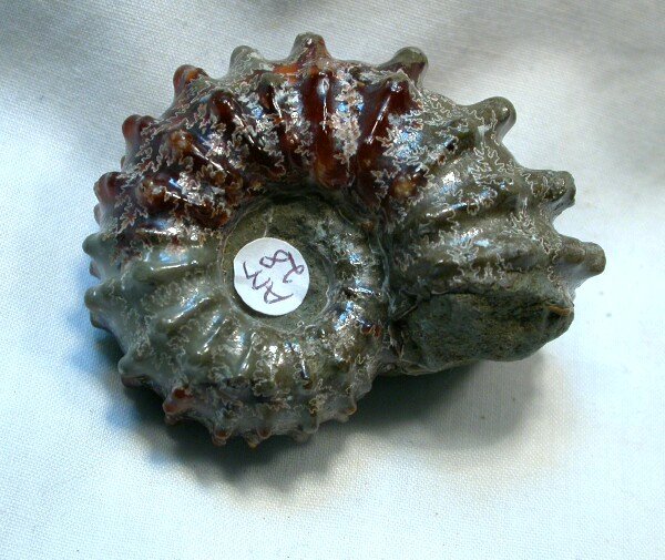 Douvilleiceras orbignyiGeologic Time: Upper Early Cretaceous, Albian Stage Size (25.4mm=1 inch): 50 mm diameter, 25 mm across living chamber Fossil Site: Mahajanga Province, Madagascar Fossil Code: AM028 Price: $60.00 - sold
