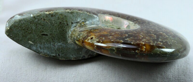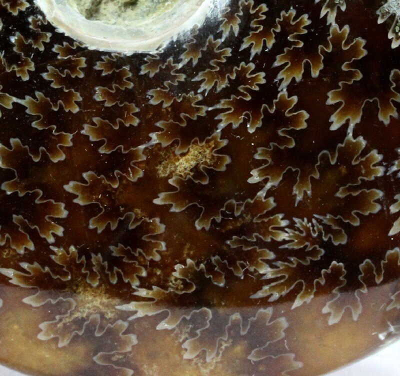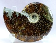 Cleoniceras spPhylum Cephalopoda, Class Ammonitida, Family Desmoceratidae Geologic Time: Middle Cretaceous, Albian Stage Size (25.4 mm = 1 inch): Ammonite is 70 mm by 58 mm Living Chamber: 35 mm by 18 mm Fossil Site: Tulear, Madagascar Fossil Code: AA109 Price: Sold |
