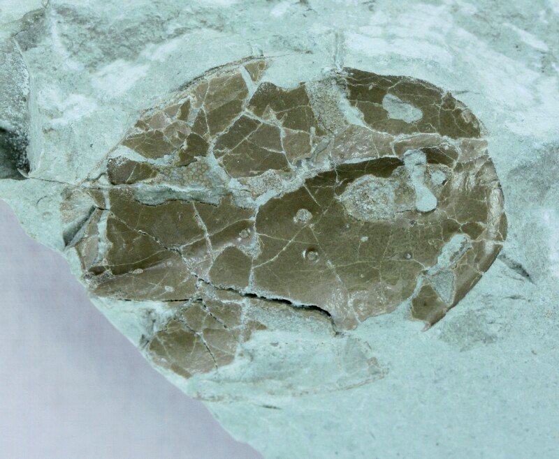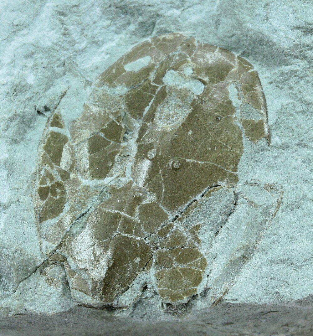 Tremataspis schmidtiClass Osteostraci, Cephalaspidiformes, Family Tremataspidae Geological Time: Upper Silurian, Middle Ludlovian Stage Size: Fossil fish is 32 mm by 25 mm on a 100 mm by 70 mm matrix Fossil Site: Island of Oesel, Estonia Fossil Code: ERK07 Price: Sold