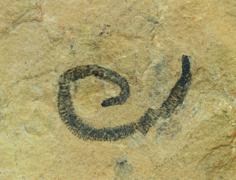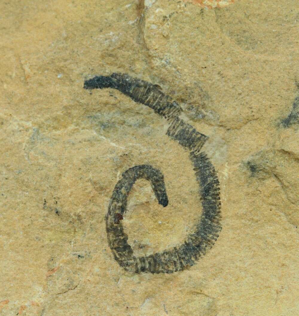 Polychaeta Incertae sedisPhylum Annelida, Class Polychaeta Geological Time: Upper Middle Cambrian Size (25.4 mm = 1 inch): Fossil is 30 mm long (if straight) on a 60 mm by 45 mm matrix Fossil Site: Weeks Formation, Millard County, Utah Fossil Code: PPF12 Price: Sold |