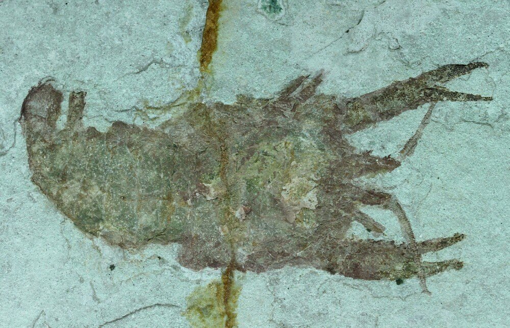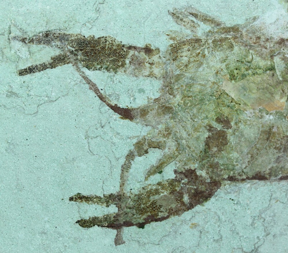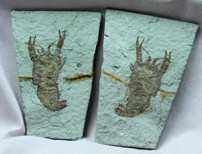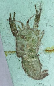 Cricoidoscelosus aethusSubphylum Crustacea, Class Malacostraca, Order Decapoda, Superfamily Astacidea, Family Cricoscelosidae Geological Time: Lower Cretaceous (~128 m.y.a.) Size: Fossil is 85 mm long ; Matrix: 130 mm by 85 mm each Fossil Site: Yixian Formation, Lingyuan, Liaoning Province of China Code: KZC15 Price: Sold |