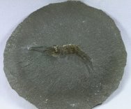 Belotelson magisterSubphylum Crustacea, Class Malacostraca, Order Belotelsonidea Geological Time: Mississippian (~320 m.y.a.) Size: Fossil is 58 mm long (curve measure); Matrix: 80 mm by 185 mm Fossil Site: Heath Shale Formation, Bear Gulch Limestone, Fergus County, Montana Code: BGF665 Price: Sold