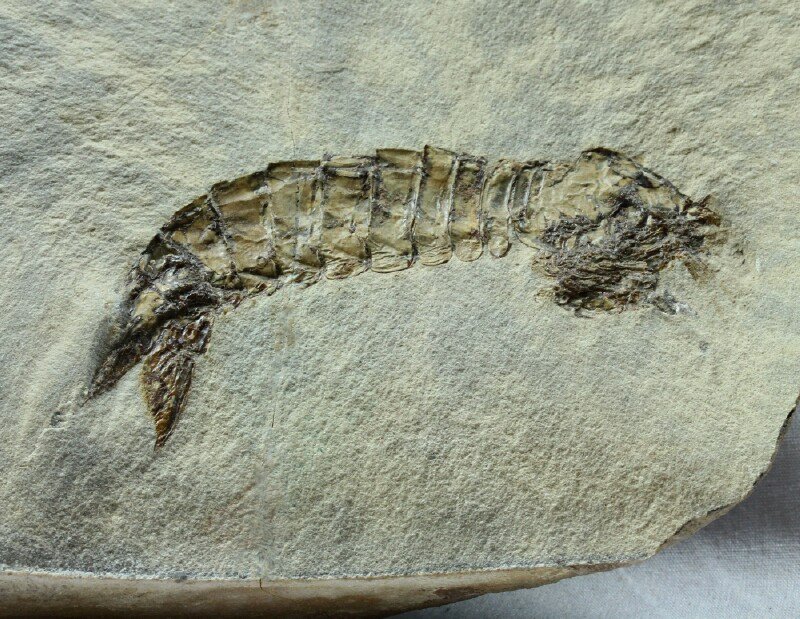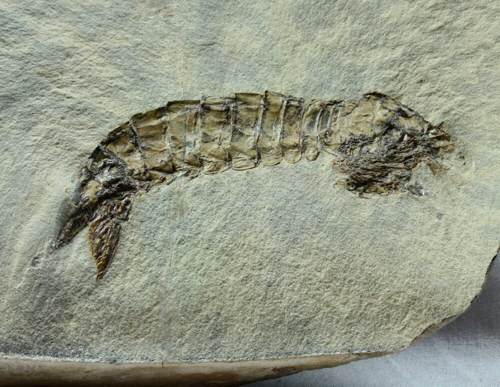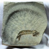 Tyrannophontes theridionSubphylum Crustacea, Class Malacostraca, Family Tyrannophontidae Geological Time: Mississippian (~320 m.y.a.) Size: Fossil is 93 mm (curve measure); Matrix: 150 mm by 153 mm Fossil Site: Heath Shale Formation, Bear Gulch Limestone, Fergus County, Montana Code: BGF566 Price: Sold |