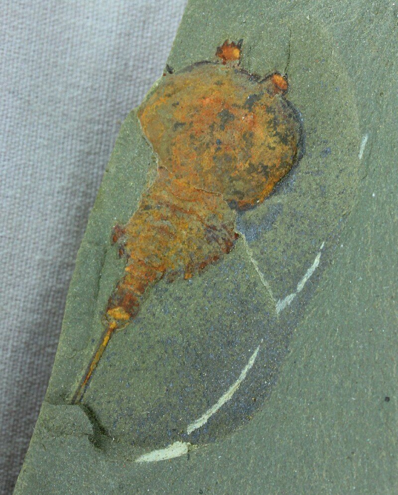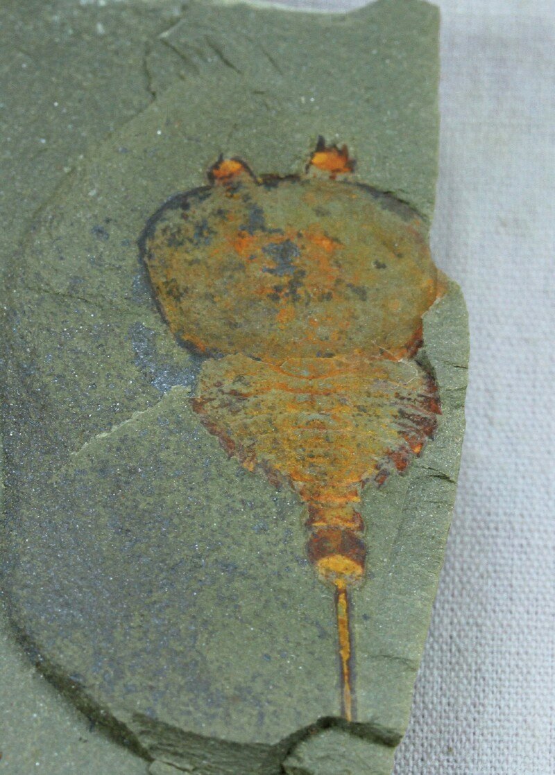 Xiphosurid Horseshoe Crab AncestorClass Merostomata, Order Xiphosurida Geological Time: Ordovician Size (25.4 mm = 1 inch): Fossil is 35 mm long by 16 mm wide on a 90 mm by 80 mm and 85 mm by 60 mm matrix pair Fossil Site: Fezouata Formation, Zagora, Morocco Fossil Code: 15057 Price: Sold |