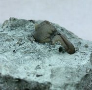 Rielaspis elegantulusTrilobites Order Phacopida, Family Encrinuridae Geological Time: Early Silurian (~435 Million Years Ago) Size: 14 mm by 7 mm on a 60 mm by 35 mm matrix Fossil Site: Jupiter Formation, Northeast Quebec, Canada Code: MMT119 Price: Sold