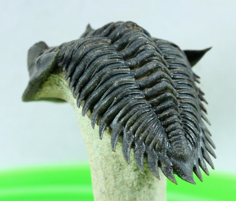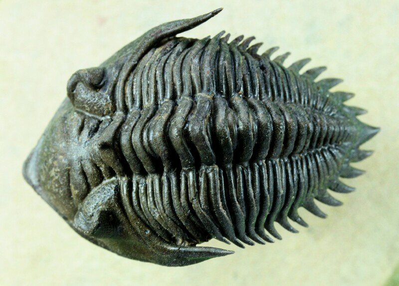 Metacanthina issoumourensisTrilobites Order Phacopida, Superfamily Acastoidea, Family Acastidae, Subfamily Asteropyginae Geological Time: Lower Devonian, Pragian Stage Size (25.4 mm = 1 inch): Trilobite is 60 mm long (curve measure) by 30 mm wide on a 83 by 65 mm matrix Fossil Site: Jebel Issoumour, Morocco Code: MT358 Price: $295.00 |