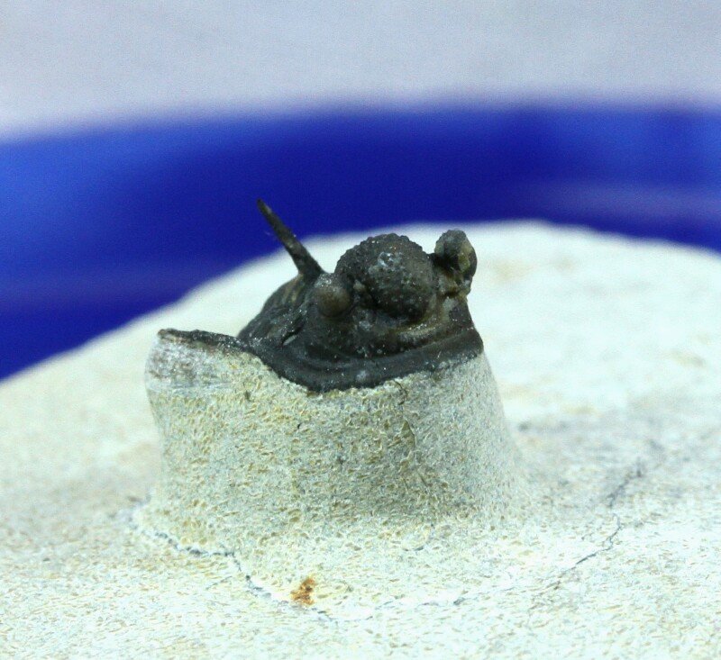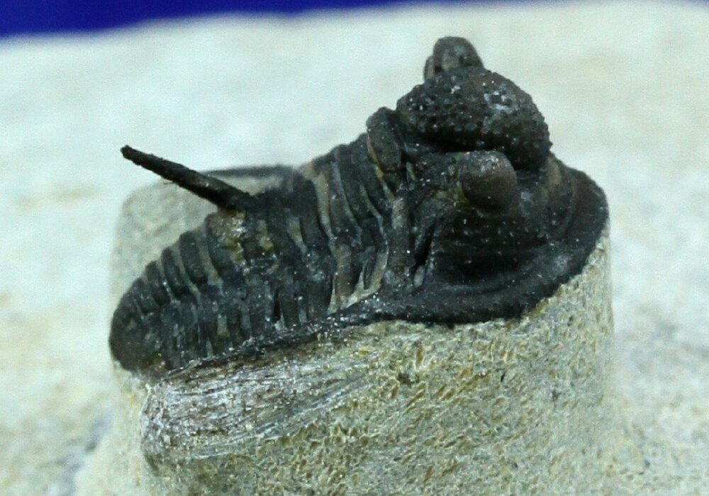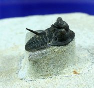 Cyphaspis sp.Trilobites Order Proetida, Family Otarionidae Geological Time: Devonian Size (25.4 mm = 1 inch): 10 mm long by 8 mm wide (with spines) on a 50 mm by 60 mm Fossil Site: Jebel Issoumour, Morocco Code: 14139 Price: $195.00