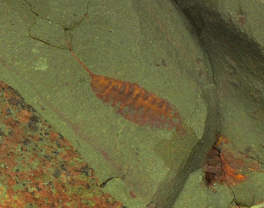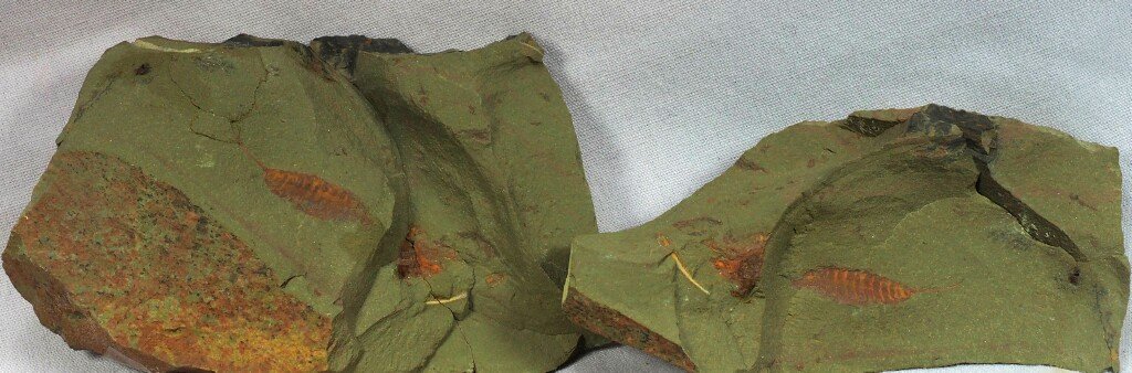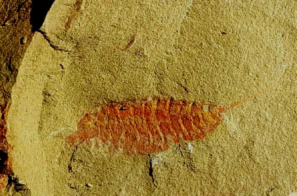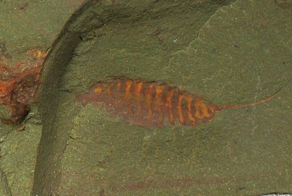 Aff Leanchoilia spGeological Time: Early Ordovician, Tremadocian Age, (~480 million years ago) Size (25.4 mm = 1 inch): 22 mm long (with telson) on a 75 mm by 40 mm and 80 mm by 52 mm matrix pair Fossil Site: Fezouata Formation, Beni Zouli, Morocco Fossil Code: 21049 Price: Sold