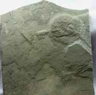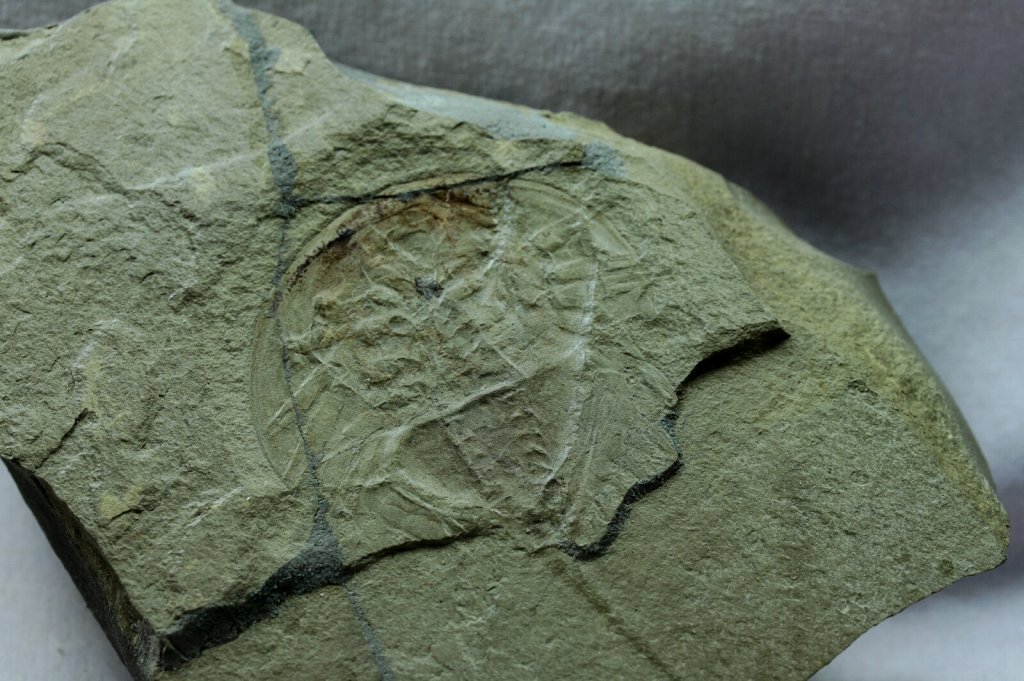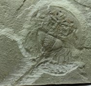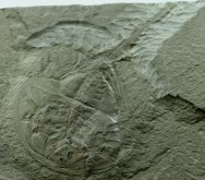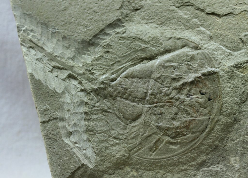 Paleolimulus longispinusSubphylum Chelicerata, Class Xiphosura, Family Paleolimulidae Geological Time: Mississippian (~320 m.y.a.) Size (25.4 mm = 1 inch): Fossil is 90 mm long (including 40 mm telson) by 52 mm wide on a 100 mm by 155 mm and 200 mm by 180 mm matrix pair Fossil Site: Heath Shale Formation, Bear Gulch Limestone, Fergus County, Montana Fossil Code: BGF704 Price: Sold