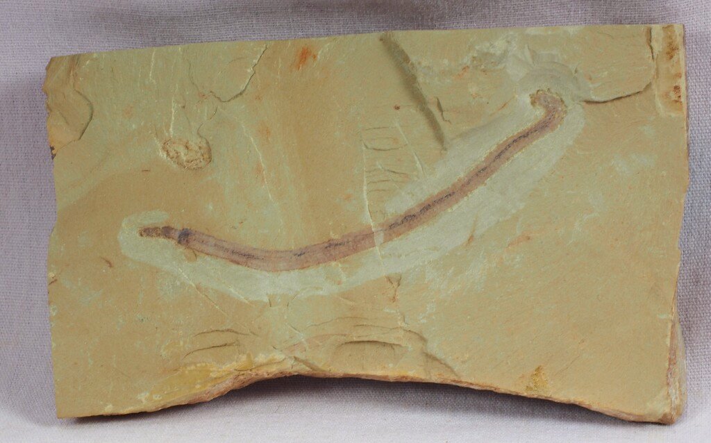 Maotianshania cylindricaPhylum Nematomorpha Geological Time: Early Cambrian (~525 million years ago) Size: Maotianshania fossil: 65 mm long (if straightened) on a 45 mm by 75 mm matrix Fossil Site: Chengjiang Maotianshan Shales, Quiongzhusi Section, Yu’anshan Member, Heilinpu Formation, Mafang Village, Anning, Kunming County, Yunnan Province, Chia Code: CJF1240 Price: Sold |