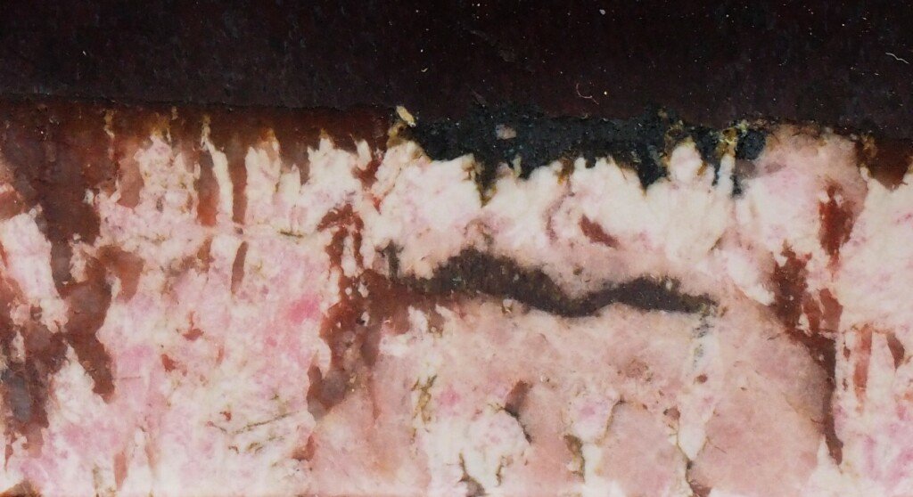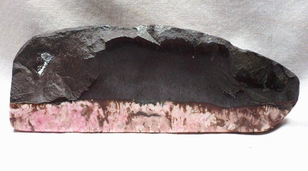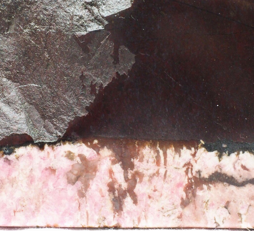 Polished Stromatolites Banded Iron Deposit with Hydrothermal Rhodochrosite IntrusionGeological Time: Early Proterozoic. ~ 1.8 Billion Years Old Size: Stromatolite is 135 mm by 50 mm by 28 mm thick (maximum) Fossil Site: Tommald Formation, Merritt #2 Mine, Cayuga North Range, Crow Wing County Minnesota Code: DS17037 Price: Sold |