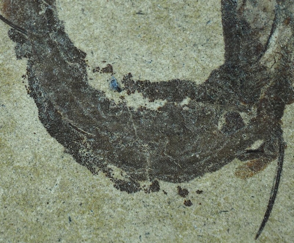 Carycinacanthus lopatinius = Homalacanthus lopatiniusClass Acanthodii, Order Acanthodiformes, Family Cheiracanthidae Geological Time: Lower Carboniferous, Tournassian Stage (~350 million years ago) Size (25.4 mm = 1 inch): Fish fossil is 55 mm (along backbone) on a 90 mm by 90 mm matrix Fossil Site: Krasnoyarsk Region, Russia Fossil Code: GF121 Price: Sold |