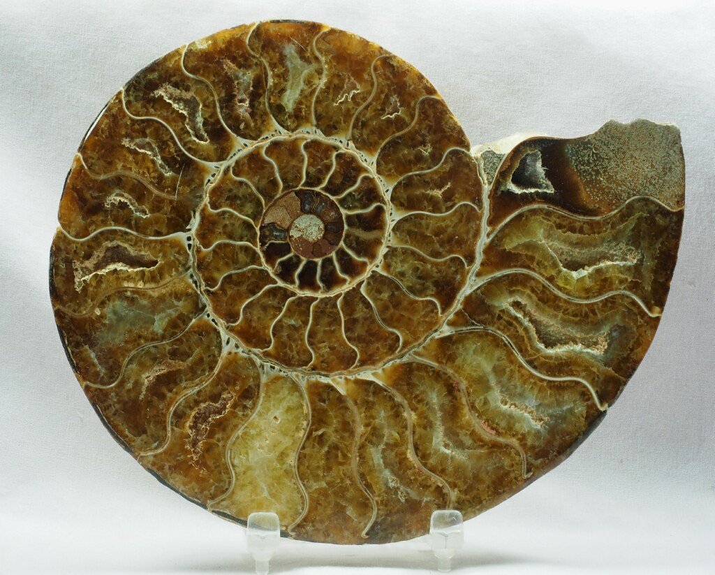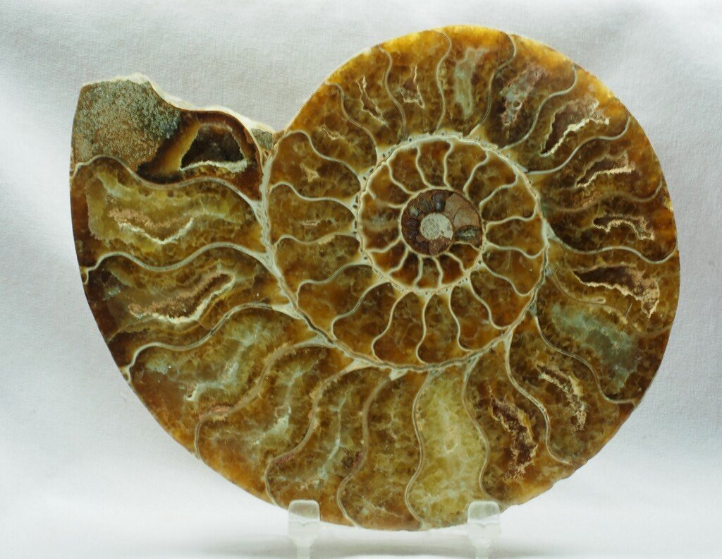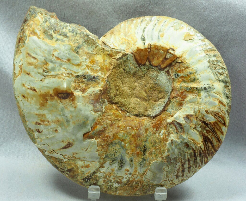 Cleoniceras besaireiClass Cephalopoda, Subclass Ammonoidea, Order Ammonitida Geological Time: Middle Cretaceous, Albian Stage (112 million years old) Size: Fossil is 160 mm by 130 mm (each) Fossil Site: Tulear, Madagascar Fossil Code: KZC25 Price: Sold |