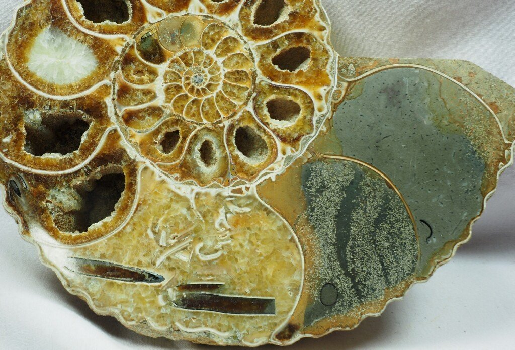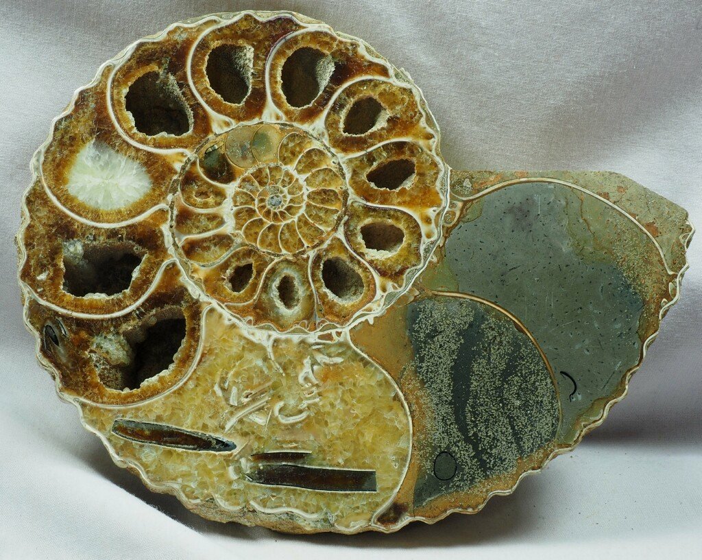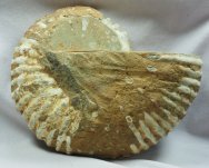 Desmoceras latodorsatumClass Cephalopoda, Subclass Ammonoidea, Order Ammonitida Geological Time: Middle Cretaceous, Albian Stage (112 million years old) Size: Fossil is 160 mm by 125 mm (each) Fossil Site: Tulear, Madagascar Fossil Code: KZC26 Price: Sold |
