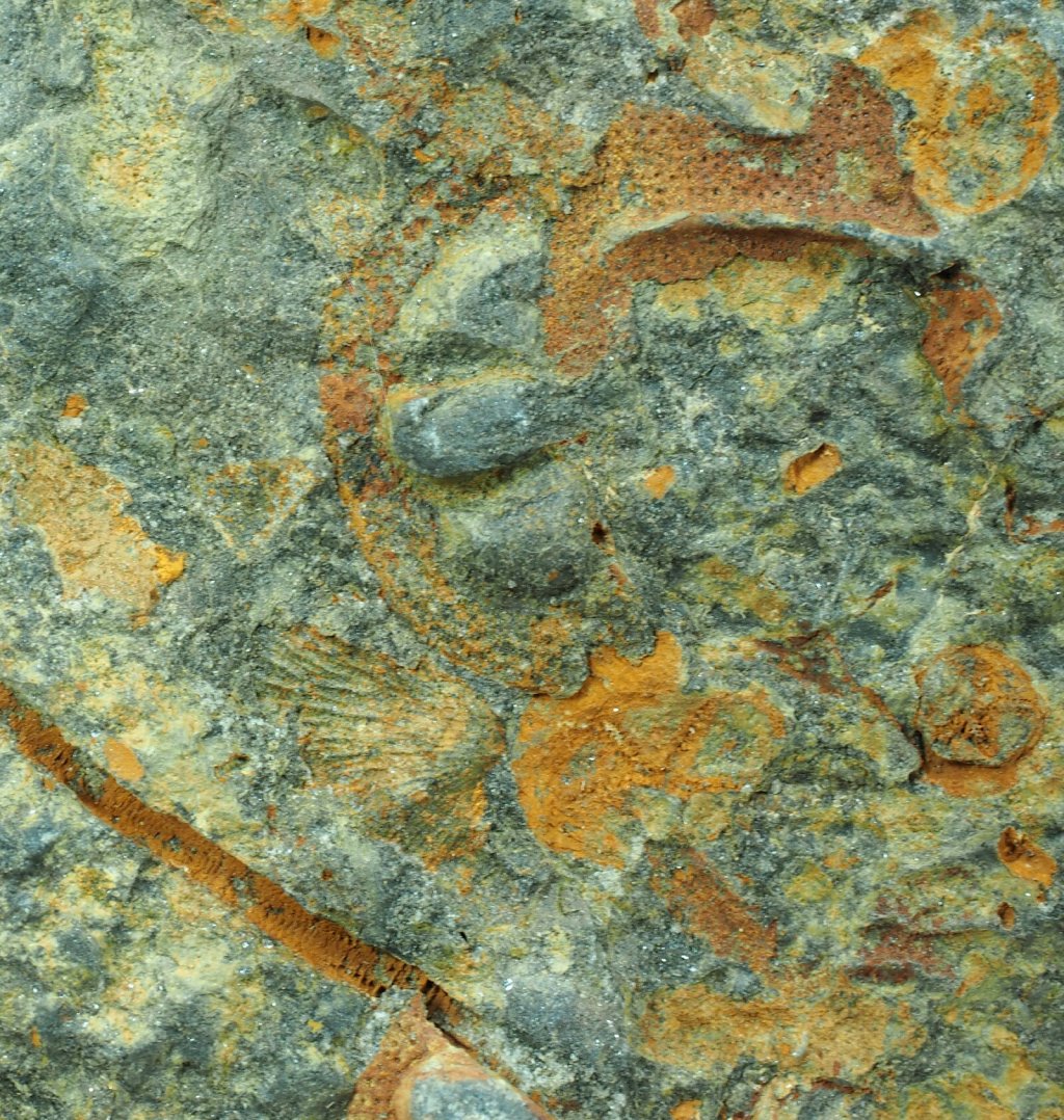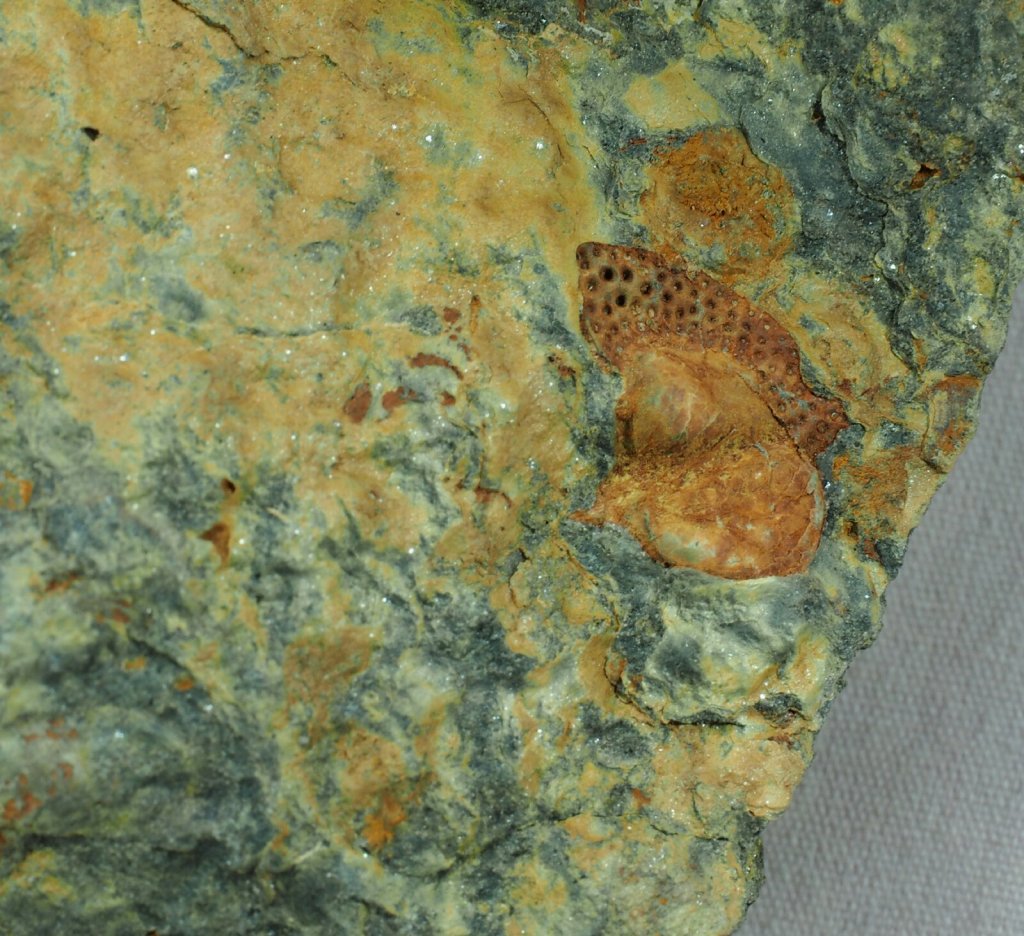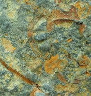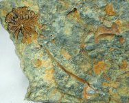 Crinoidea indetGeological Time: Middle Ordovician Size (25.4 mm = 1 inch): Crinoid fossil is 25 mm across with 32 mm associated stem on a 130 mm by 90 mm matrix Fossil Site: El Kaid Errami, Morocco (East of Anti-atlas Mountains) Code: 13149 Price: Sold |