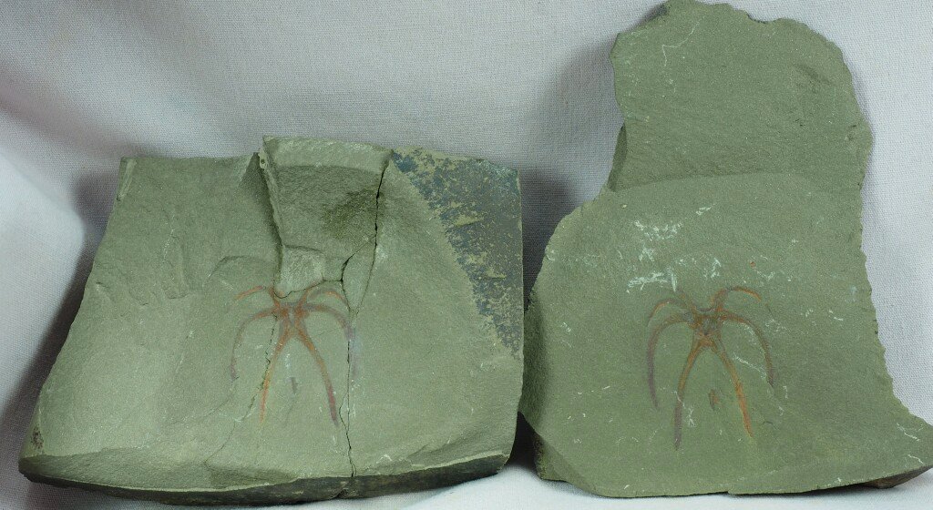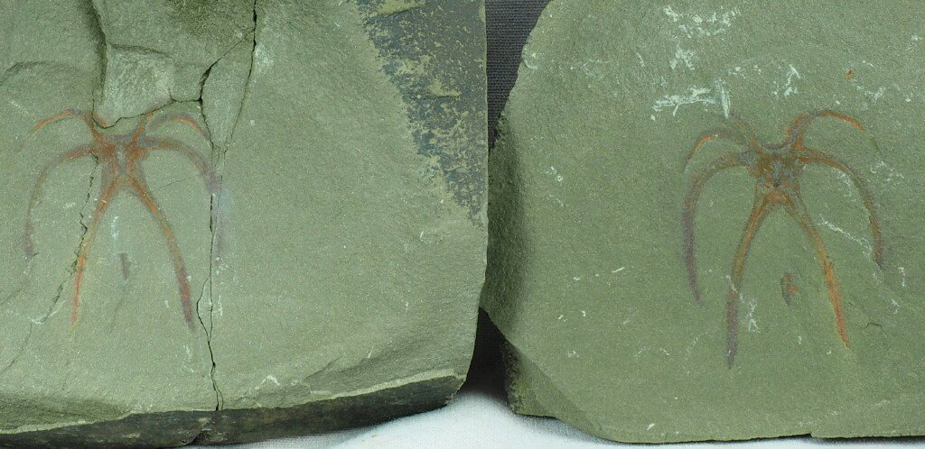" Furca " mauretanicaPhylum Arthropoda, Class Marrellomorpha Geological Time: Lower Ordovician Size: Fossil is 30 mm by 34 mm on a 90 mm by 70 mm and 95 mm by 70 mm matrix pair Fossil Site: Upper Fezouata Formation, Zagora, Morocco Code: 16218 Price: Sold