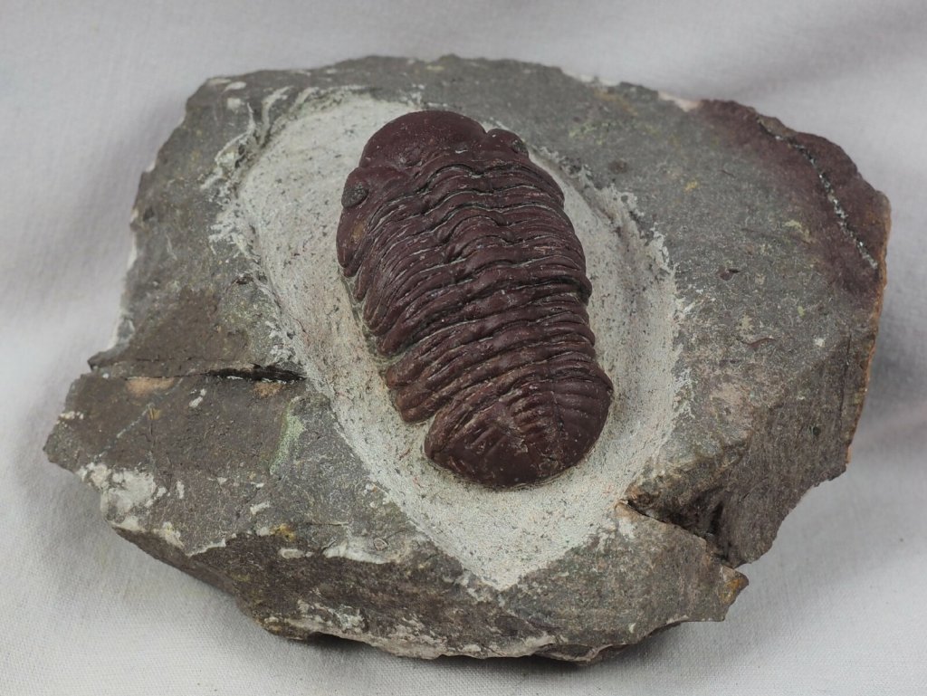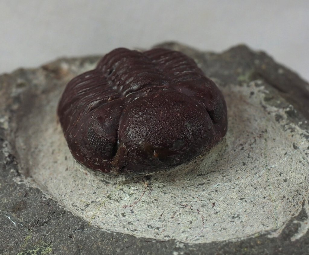 Barrandeops granulopsTrilobites Order Phacopida, Family Phacopidae Geological Time: Lower Devonian, Pragian stage (~395 million years ago) Size (25.4 mm = 1 inch): Trilobite is 55 mm long by 27 mm wide on a 90 mm by 80 mm matrix Fossil Site: Hmar Lakhdad, Morocco Fossil Code: 16069 Price: Sold |
