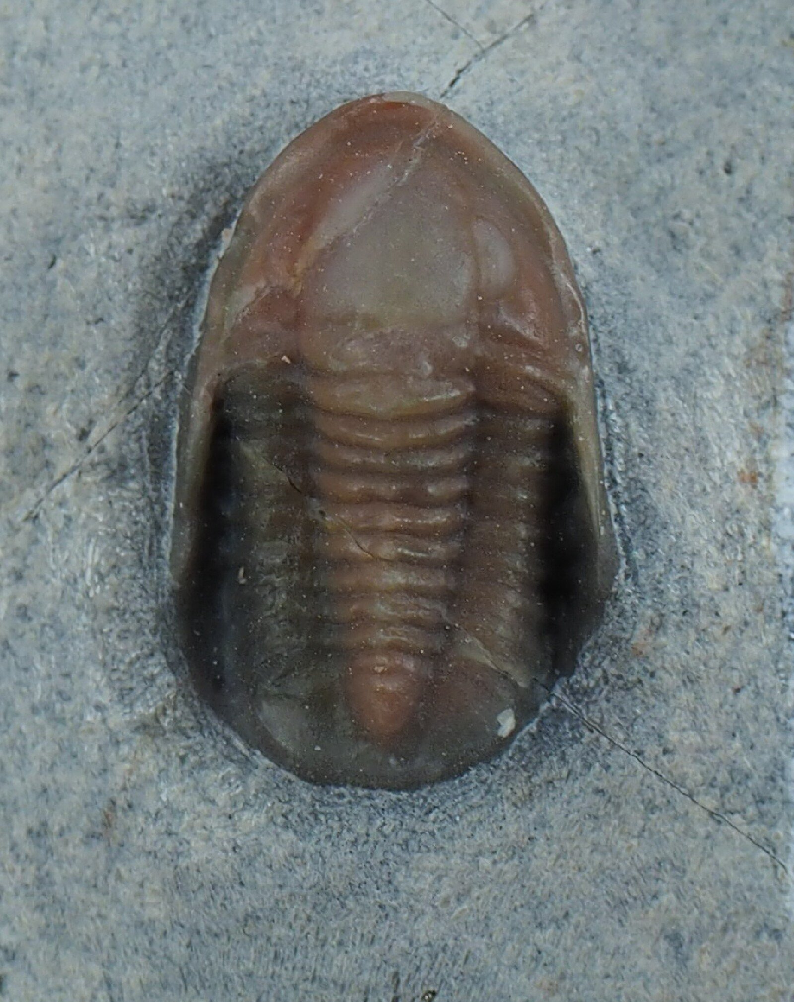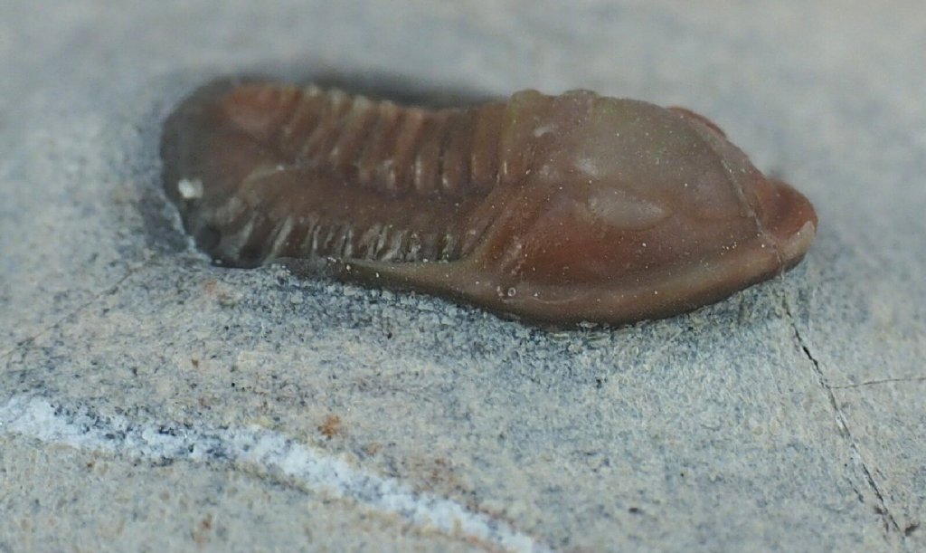 Cf Eremiproetus dufresnoyi saharaTrilobites Order Proetida, Family Tropidocoryphidae Geological Time: Middle Devonian Size (25.4 mm = 1 inch): Trilobite is 11 mm long by 8 mm wide on a 75 by 55 mm matrix Fossil Site: Jorf, Morocco Fossil Code: 16099 Price: Sold |
