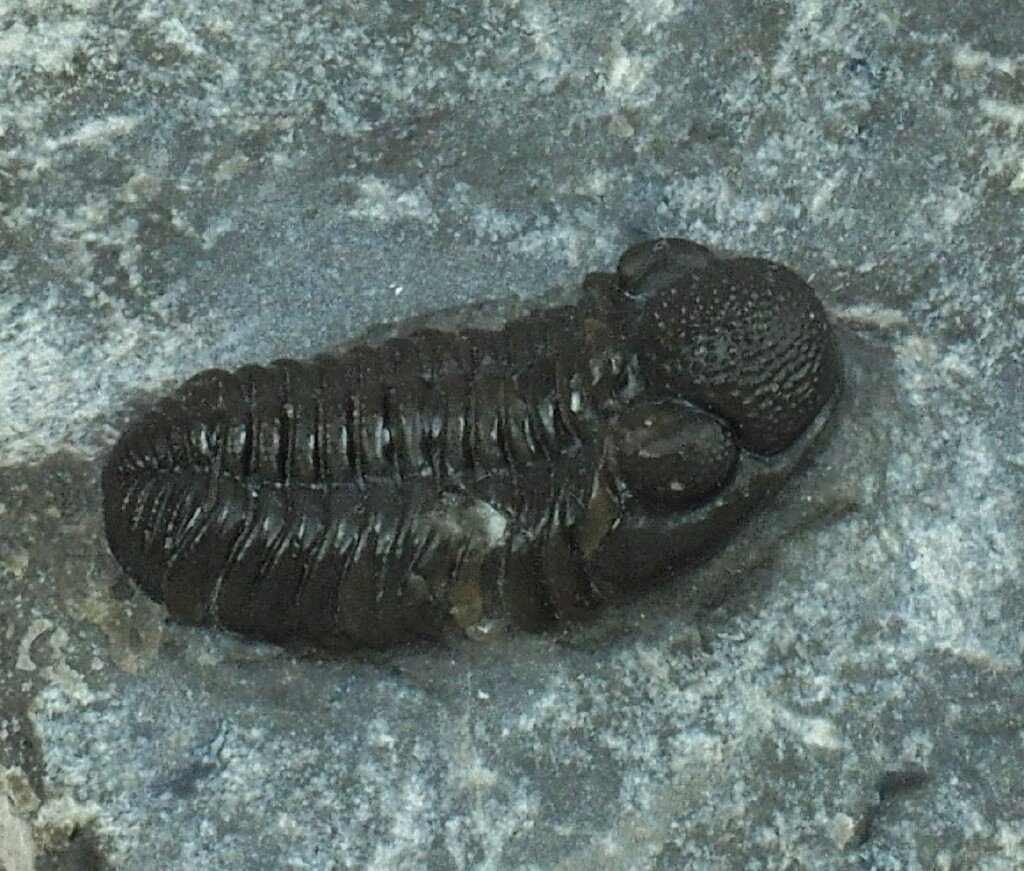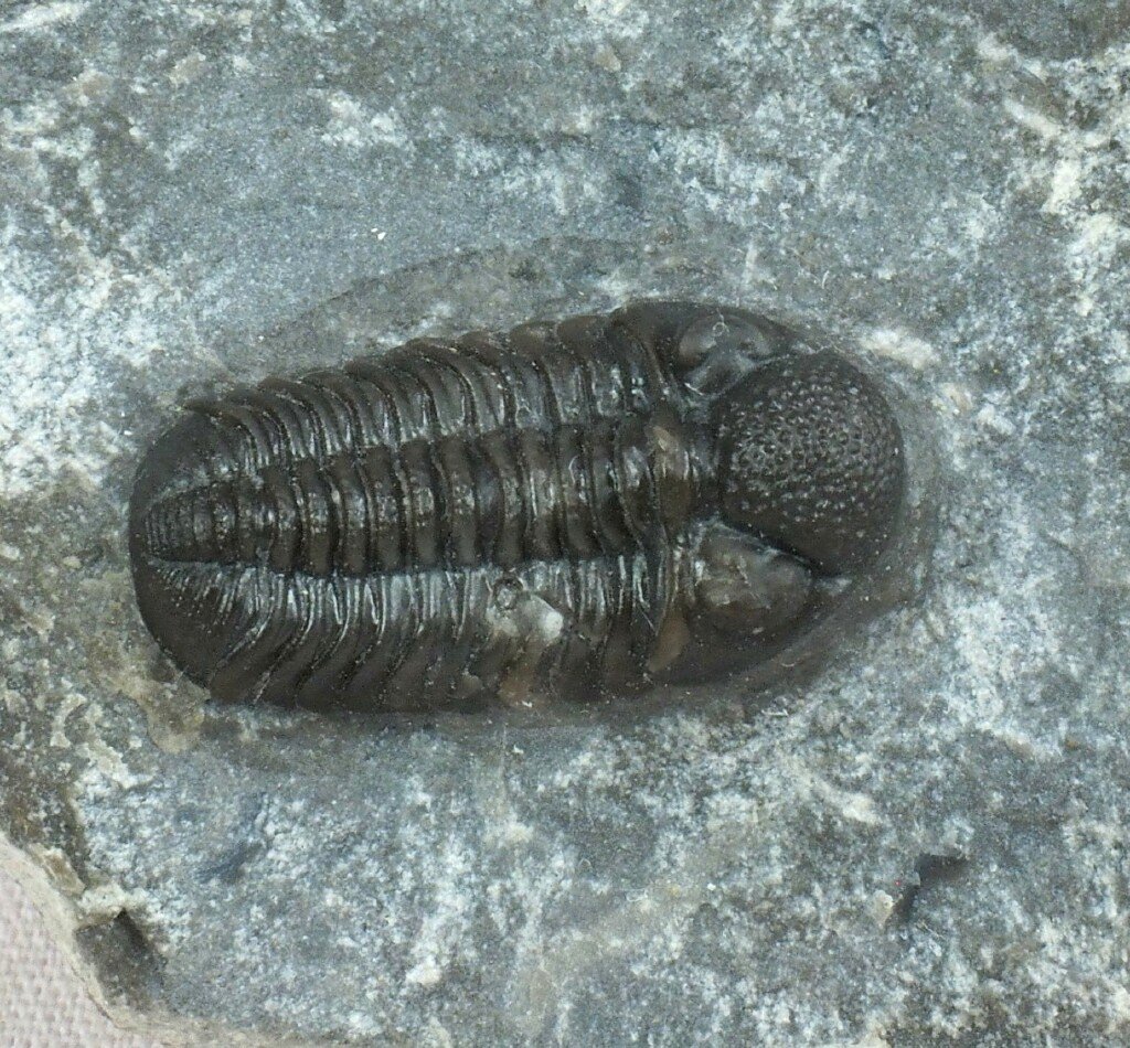 Ardrisiops weugiTrilobites Order Phacopida, Family Phacopidae Geological Time: Early Devonian, Emsian Stage (~ 395 million years ago) Size: Trilobite is 17 mm long by 8 mm wide on a 75 mm by 60 mm matrix Fossil Site: Tafraoute, Morocco Code: 19113 Price: $75.00 |