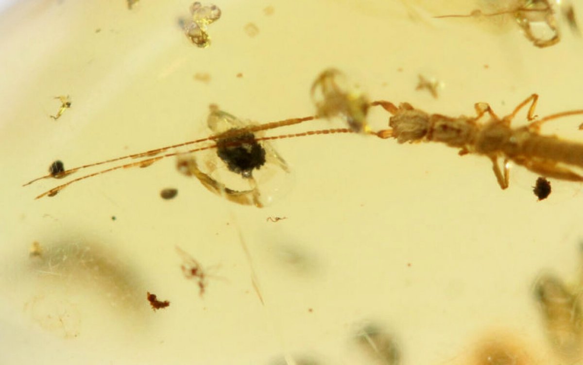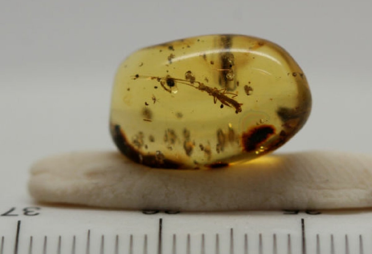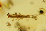 Phamatodea (Waliking Stck)Class Insecta, Order Phasmida (also known as Phasmatodea) Geological Time: Late Cretaceous, Cenomanian Stage (~100 million years ago) Size (25.4 mm = 1 inch): Amber: 16 mm long, 10 mm across, Inclusion: 10 mm (with antennae) Fossil Site: Hukawng Valley, Kachin State, Myanmar Code: MYA09 Price: $1295.00 |
