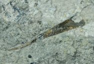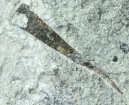 Camborhytium major? Phylum Cnidaria; Class, Order, & Family Uncertain Geological Time: Middle Cambrian (~520 million years ago) Size (25.4 mm = 1 inch): Fossil is 70 mm long by 11 mm across on a 230 mm by 160 matrix Fossil Site: Wheeler Shale, Millard County, Utah Code: ND006 Price: Sold |