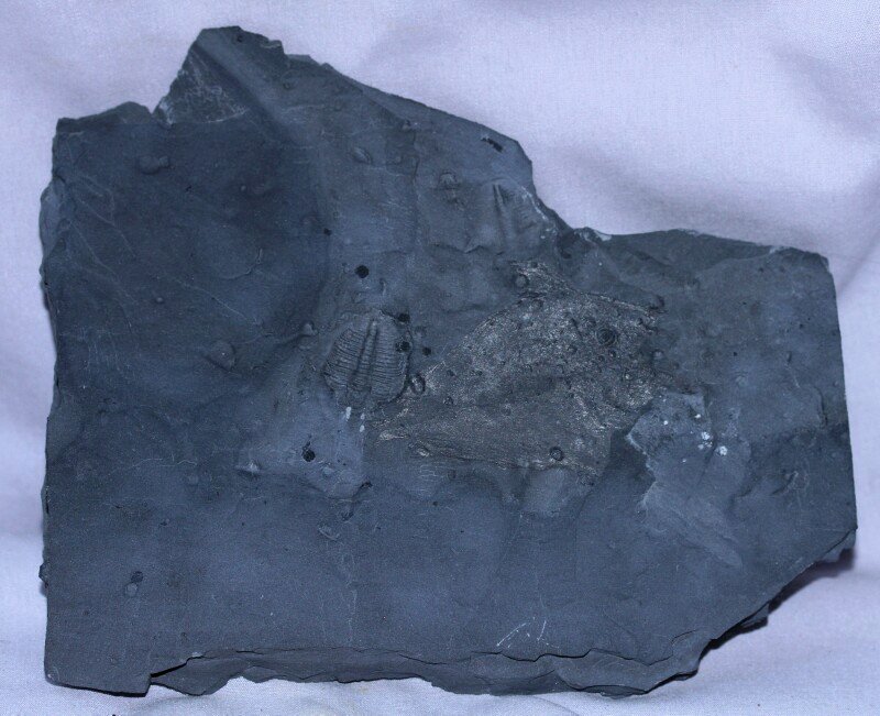 Pseudoarctolepis sharpiPhylum Arthropoda, Subphylum Crustacea, Class Malacostraca, Class Phyllocarida Geological Time: Middle Cambrian (~520 million years ago) Size (25.4 mm = 1 inch): Fossil is 60 mm long by 45 mm across on a 160 mm by 115 mm matrix Fossil Site: Wheeler Shale, Millard County, Utah Code: ND031 Price: Sold |