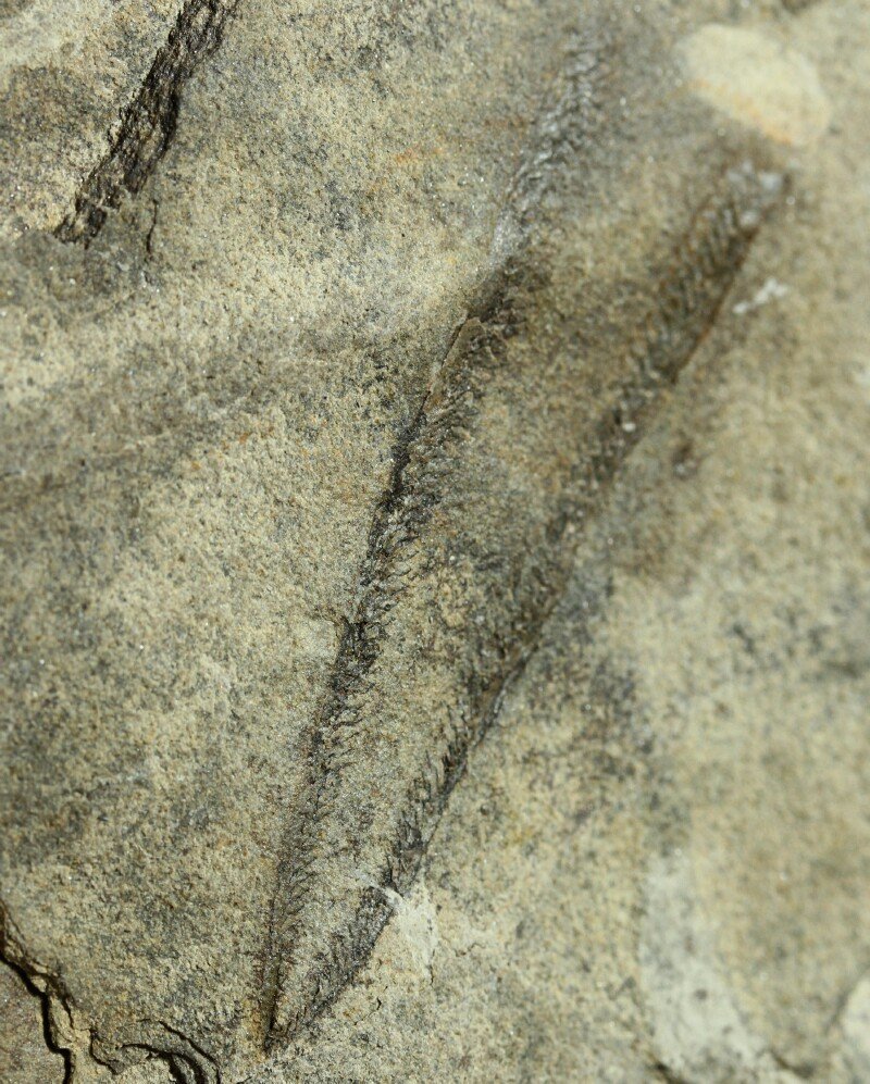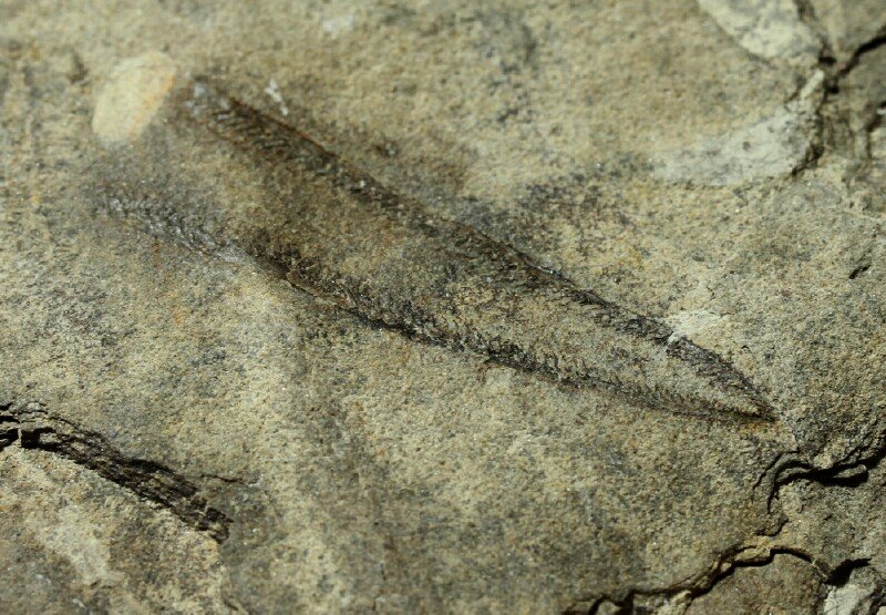 Didymograptus denticulatusPhylum Hemichordata, Class Graptolithina Geological Time: Lower Ordovician Size (25.4 mm = 1 inch): Fossil is 65 mm long on a 140 mm by 85 mm matrix Fossil Site: Fillmore Formation, Pyramid Ridge Quarry, Millard County, Utah Code: TT028 Price: $45.00 |